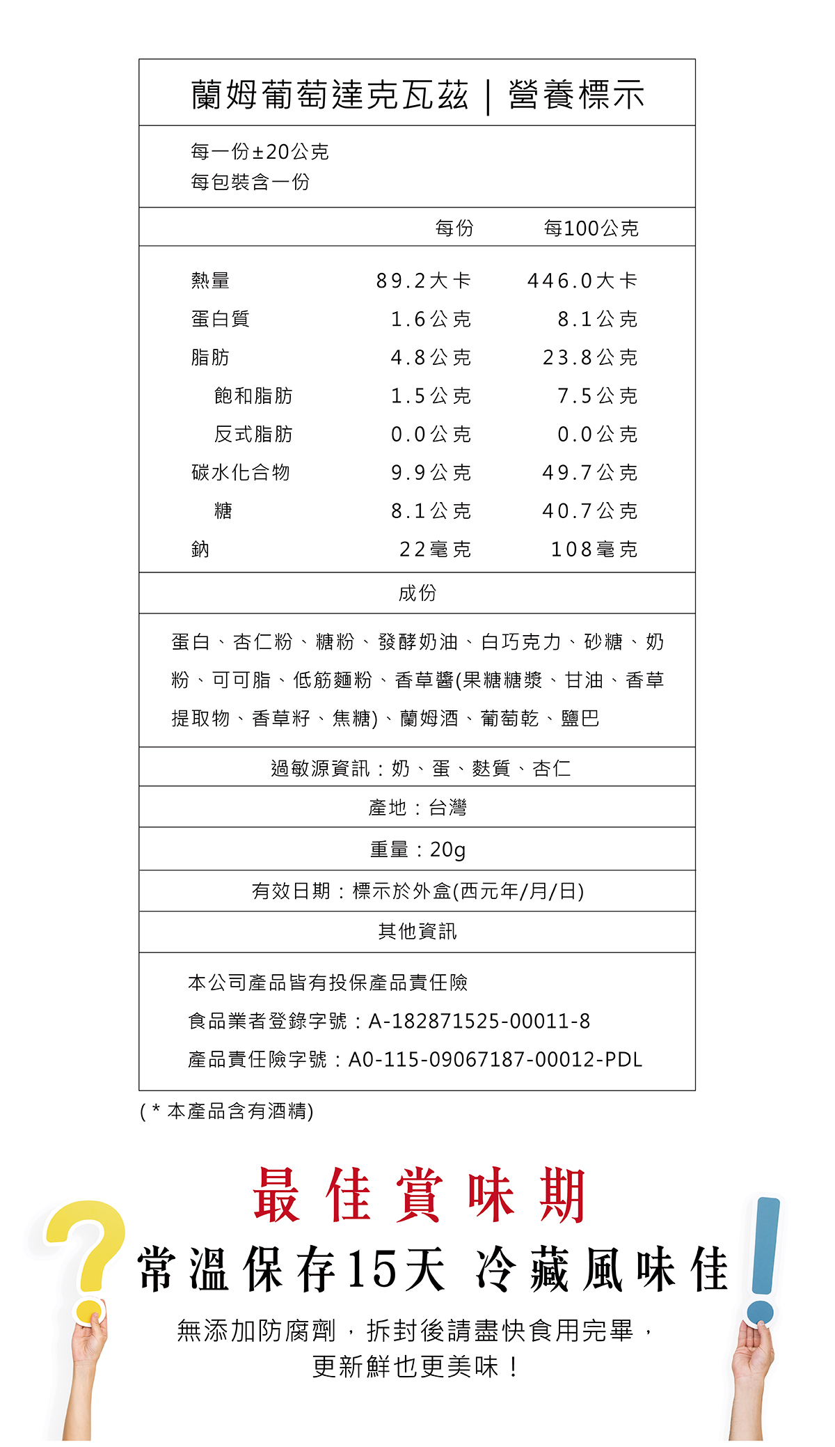 ・常溫保存15天,冷藏風味佳