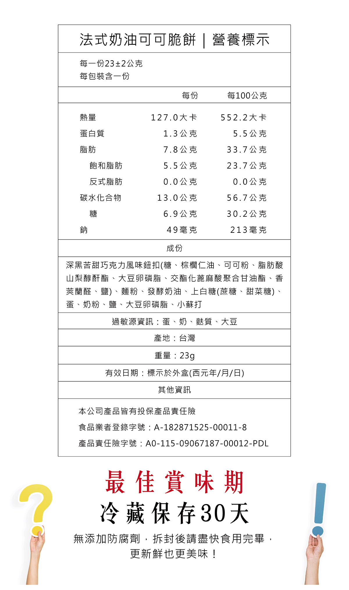 可可脆餅:一反過往餅殼包覆內餡,結合法式工藝,將苦甜巧克力風味鈕扣融入酥脆奶油餅皮,從苦甜的醇厚滋味到奶油的濃郁芳香,每一個元素都經過精心融合,帶給您無法忘懷的極致享受!😋