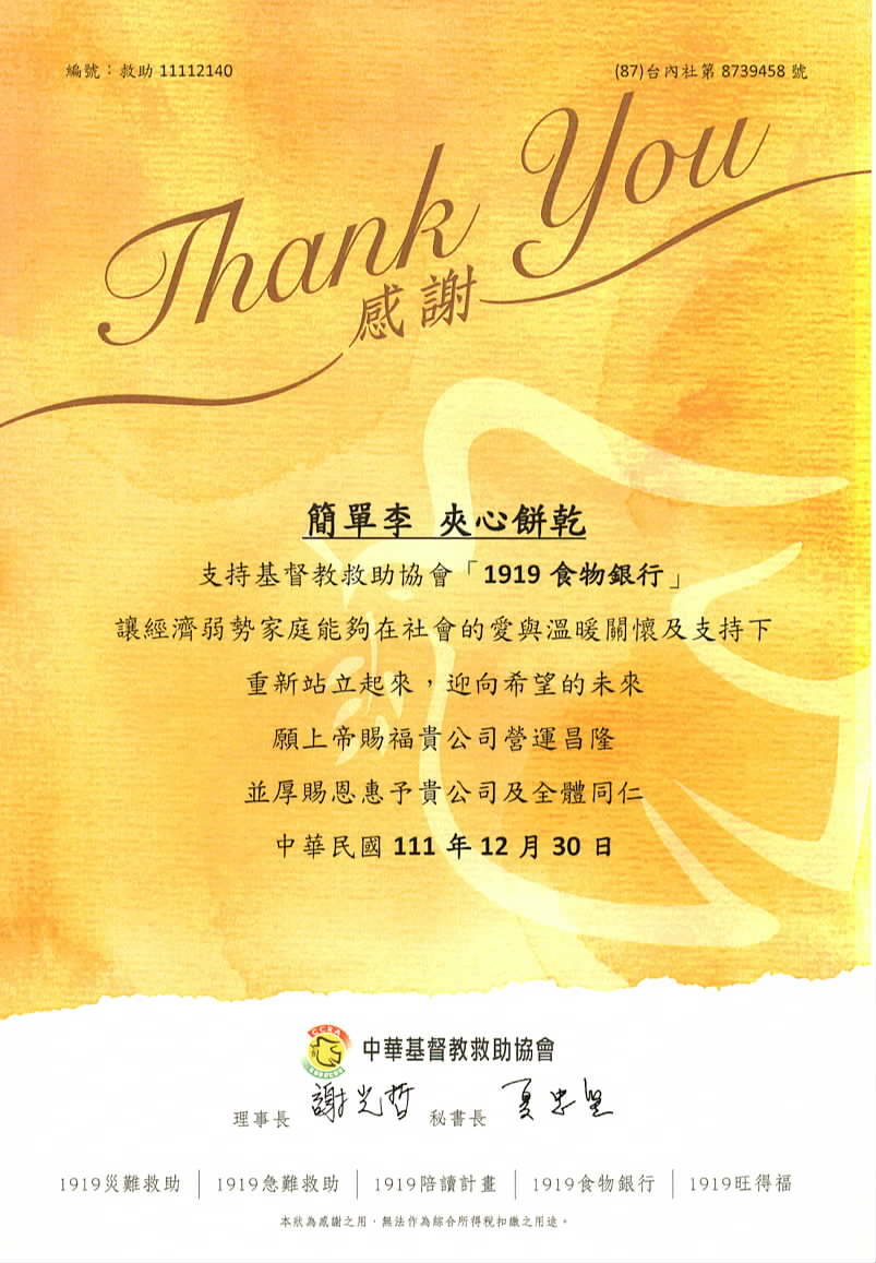 為了救助生活在最底層的經濟弱勢家庭,基督教救助協會除原有已執行之「重大災難救助」、「急難家庭救助」、「弱勢家庭兒童課後陪讀」等服務外,再推出「1919食物銀行」。定期提供經濟弱勢家庭基本民生必需品,以減少其日常生活開支,進而將有限的金錢,運用在孩童教育、醫療等方面,改善生活品質。2010年12月第一次試辦物資發放,2011年4月正式於高雄、屏東、台東等「八八災區」開始展開服務,至今救助範團已遍及全台,每個月幫助近5000個家庭。