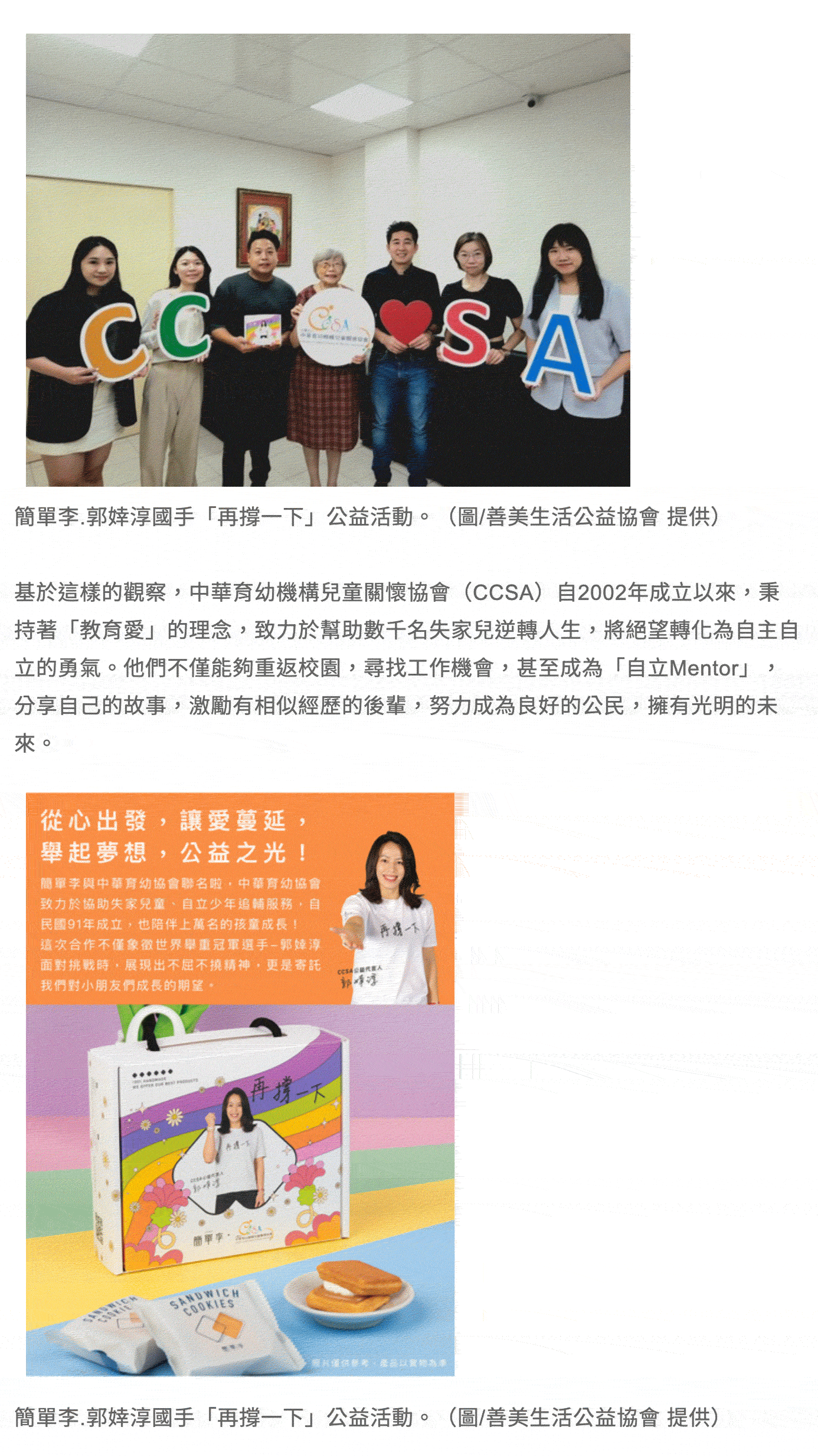 簡單李與中華育幼協會聯名啦,中華育幼協會致力於幫助低齡、低學歷、低技能,離院無法返家的失家兒少,能漸進穩定於社會生活,自民國91年成立,也陪伴上萬名的孩童成長!