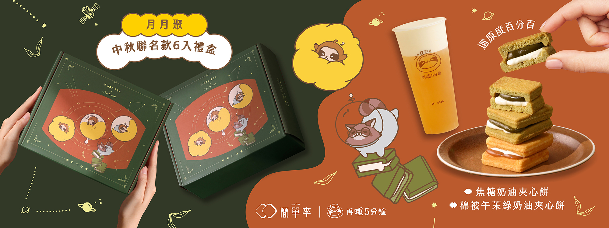 這次我們把人氣飲品「再睡5分鐘」-”棉被午茉綠"化身為雙餡奶油夾心,躲進餅乾裡的是瀰漫茉莉花香的特製奶霜,還偷偷加了一點極細岩鹽,還原你記憶中的棉被午茉綠!