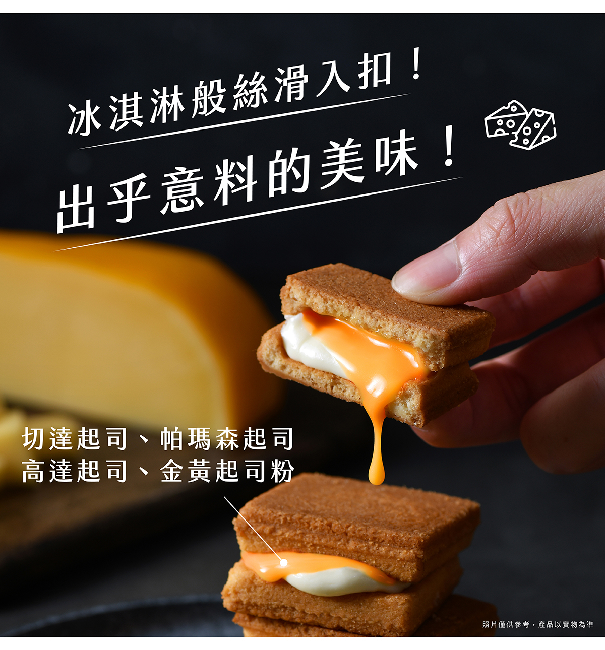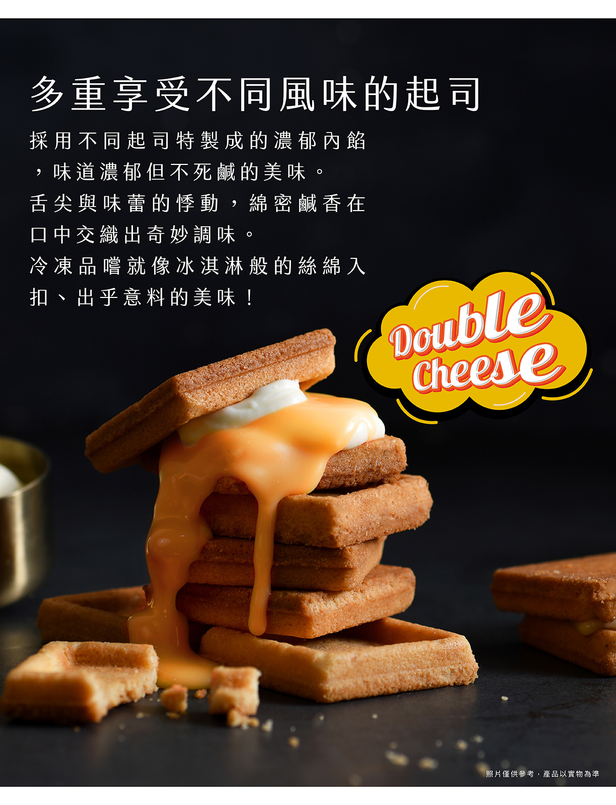 採用多種不同起司特製成內餡,味道濃郁但不死鹹的美味,舌尖與味蕾的悸動,綿密鹹香在口中交織出奇妙調味,冷凍品嚐就像冰淇淋般的絲綿入扣、出乎意料的美味!