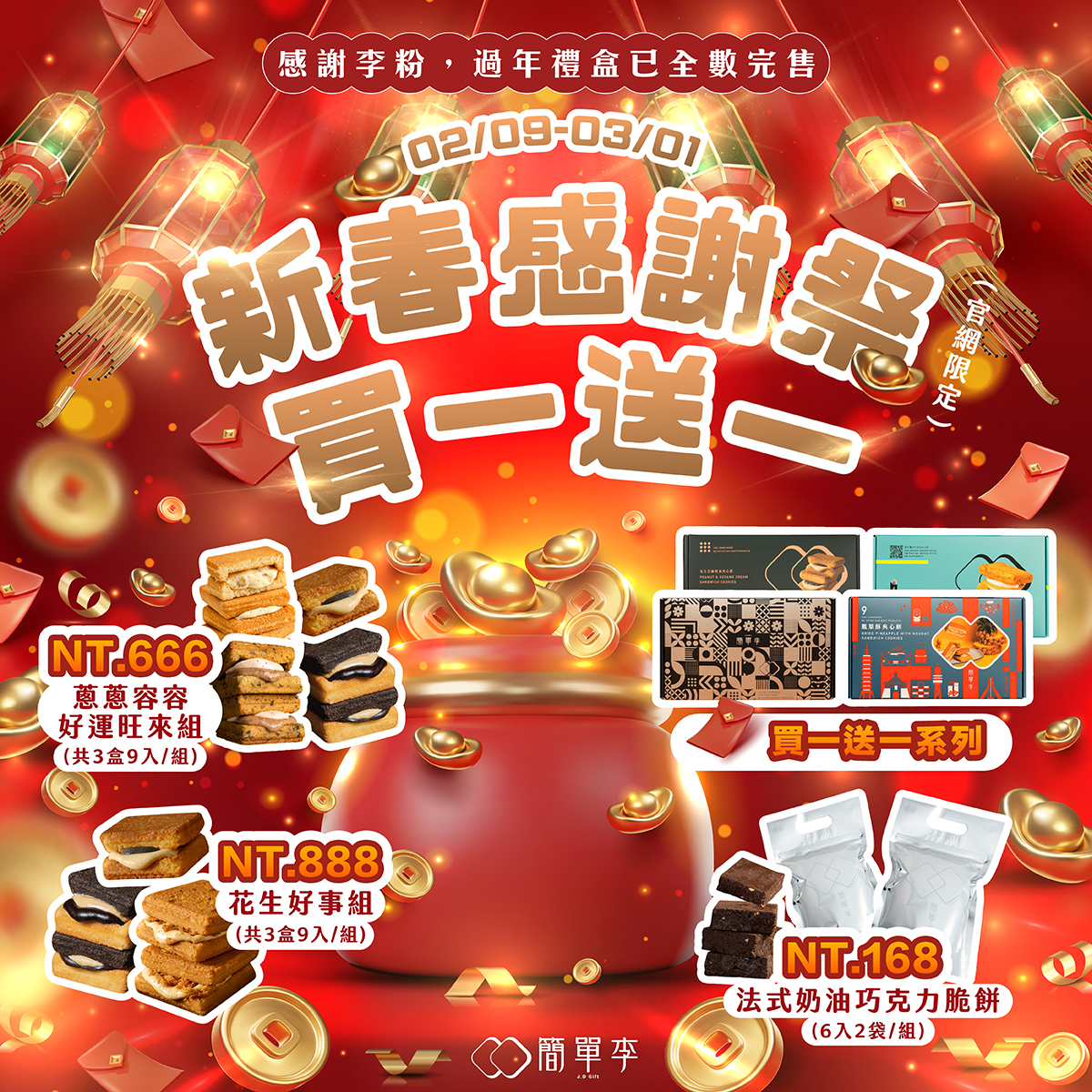 【新春感謝祭|簡單補財庫】感謝李粉們,手速完購過年禮盒,禮盒已全數完售了~🙏」春節禮盒已全數完售,即日起新春感謝祭大回饋!🎉 由衷感謝每一位李粉的支持 ❤️指定商品買一送一 ✨ 超划算~ ✨