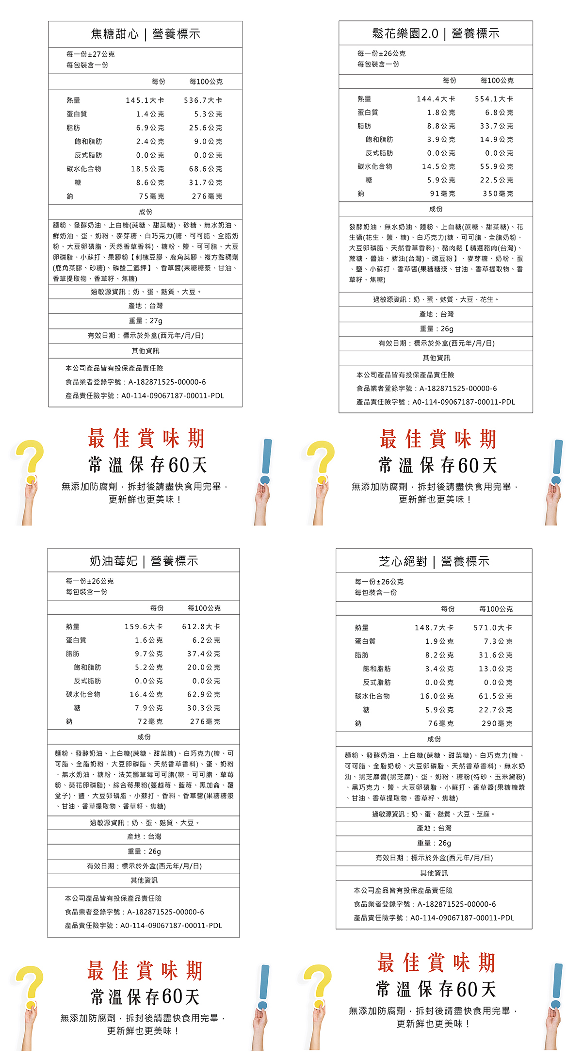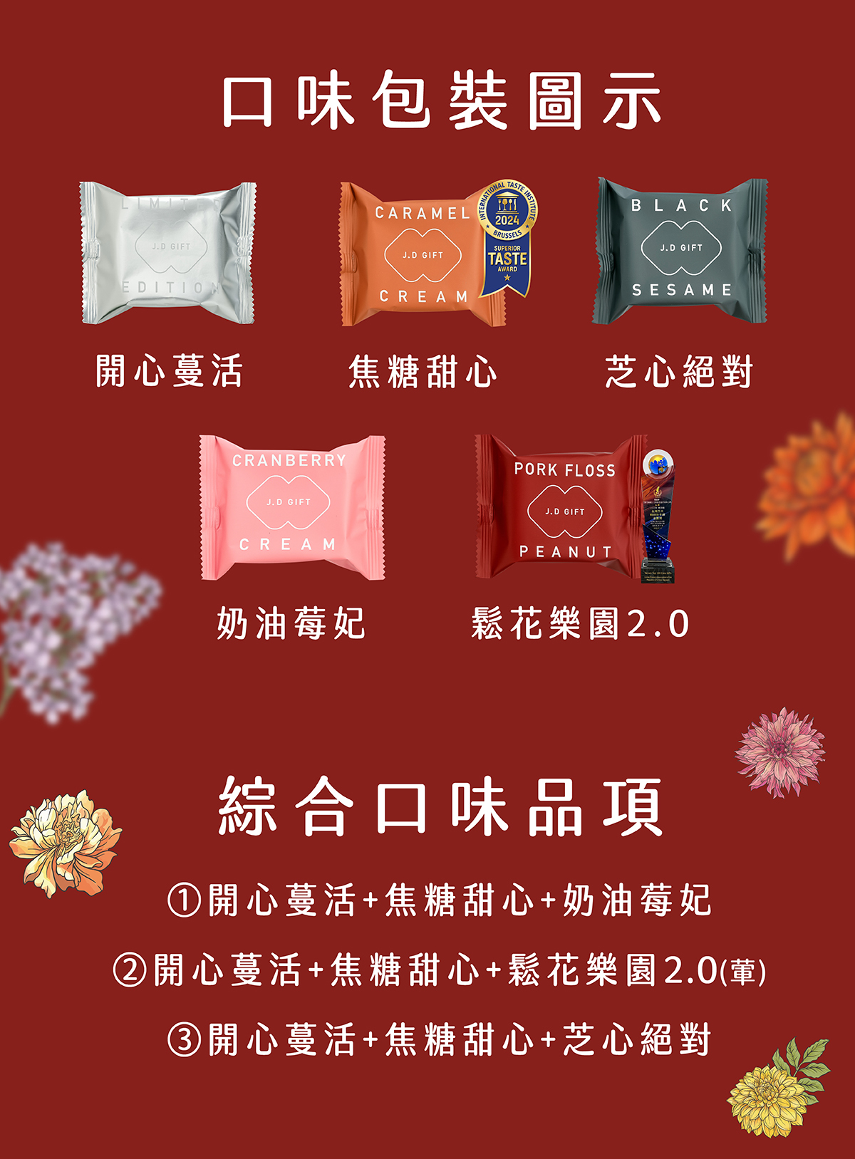 ②開心果+焦糖+肉鬆花生(葷)各四入