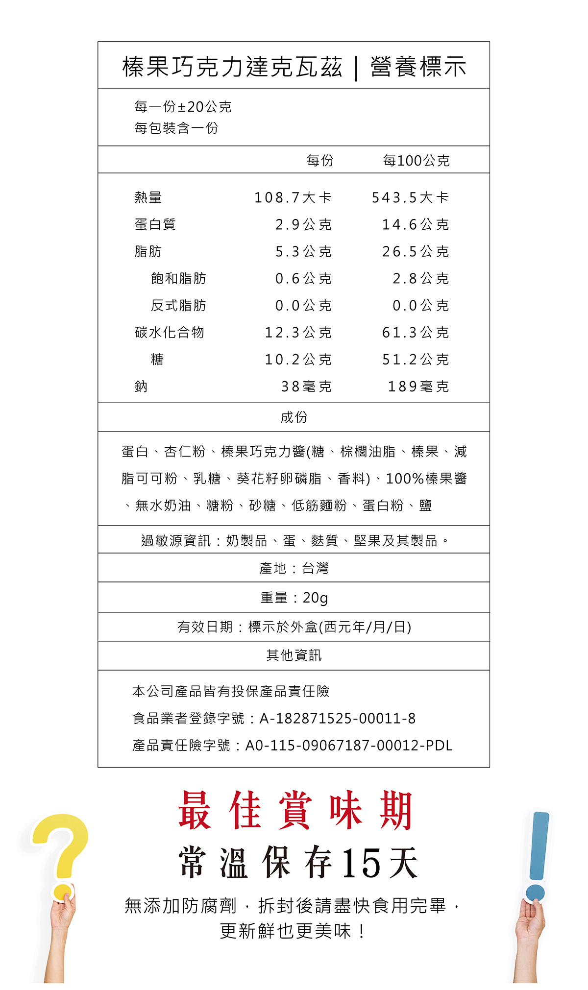 內容物:榛果巧克力達克瓦茲 / 共一盒(8入/盒)
