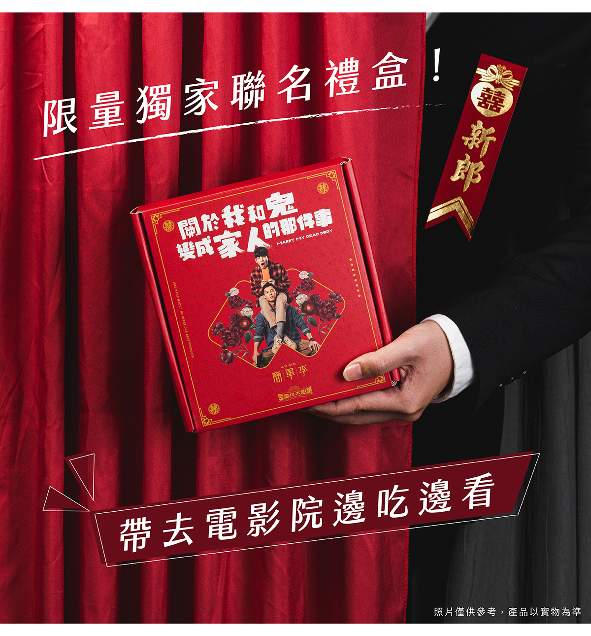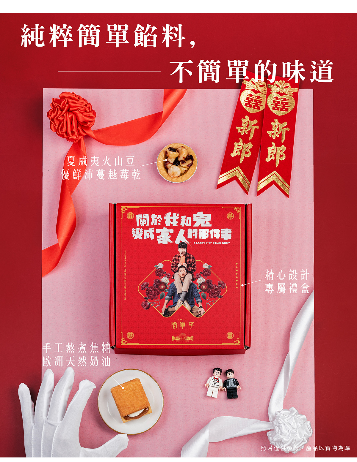 簡單李這次跟金盞花大影業合作啦!❤️ 關於我和鬼變成家人的那件事,恐同男警吳明翰,誤撿地上紅包,沒想到紅包裡的對象是個男的!被迫男男冥婚的明翰,一場荒謬絕倫、笑中帶淚的旅程就此展開!一定要入手限量聯名禮盒,邊吃邊看電影啊 🎬