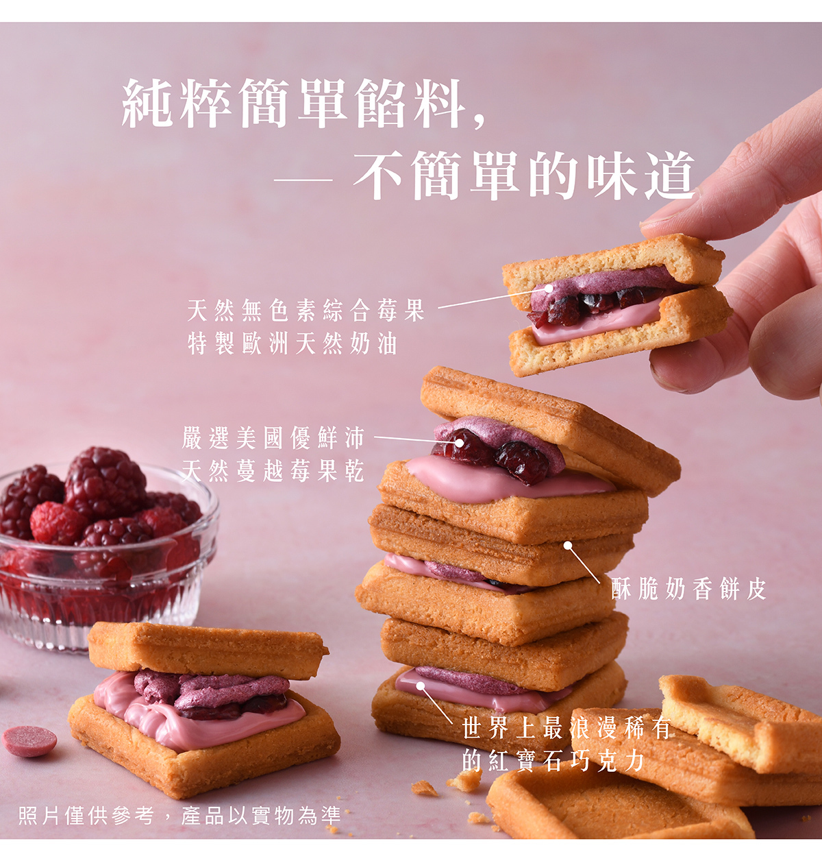 世界第四種巧克力,結合蔓越莓果乾,2.0再升級!特製奶油內餡再加上覆盆子、藍莓口感,酸甜滋味咬一口就像初戀般讓人甜蜜又期待!