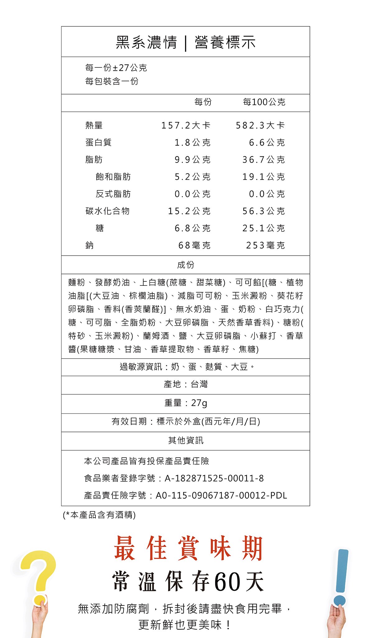 餅乾酥香,內餡滑順,揉合義大利巧克力風味醬與白蘭地鮮奶油,在層層堆疊中,演繹可可的低調奢華。